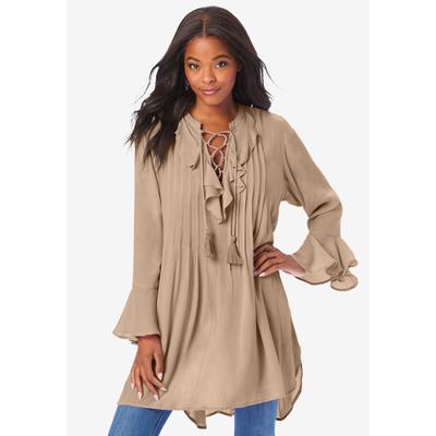 Plus Size Women's Plus Size Crinkle Chiffon Tie Fr...