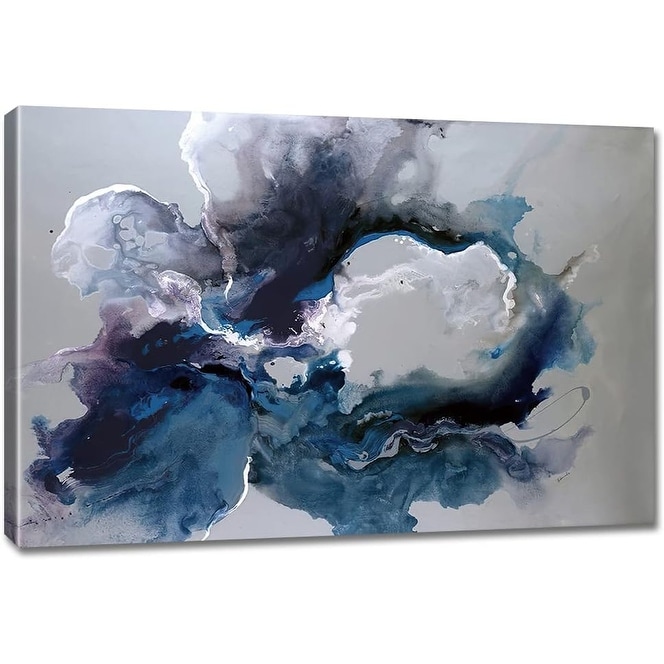 Art Paintings Heavy Blue and White Paint Spreads L...